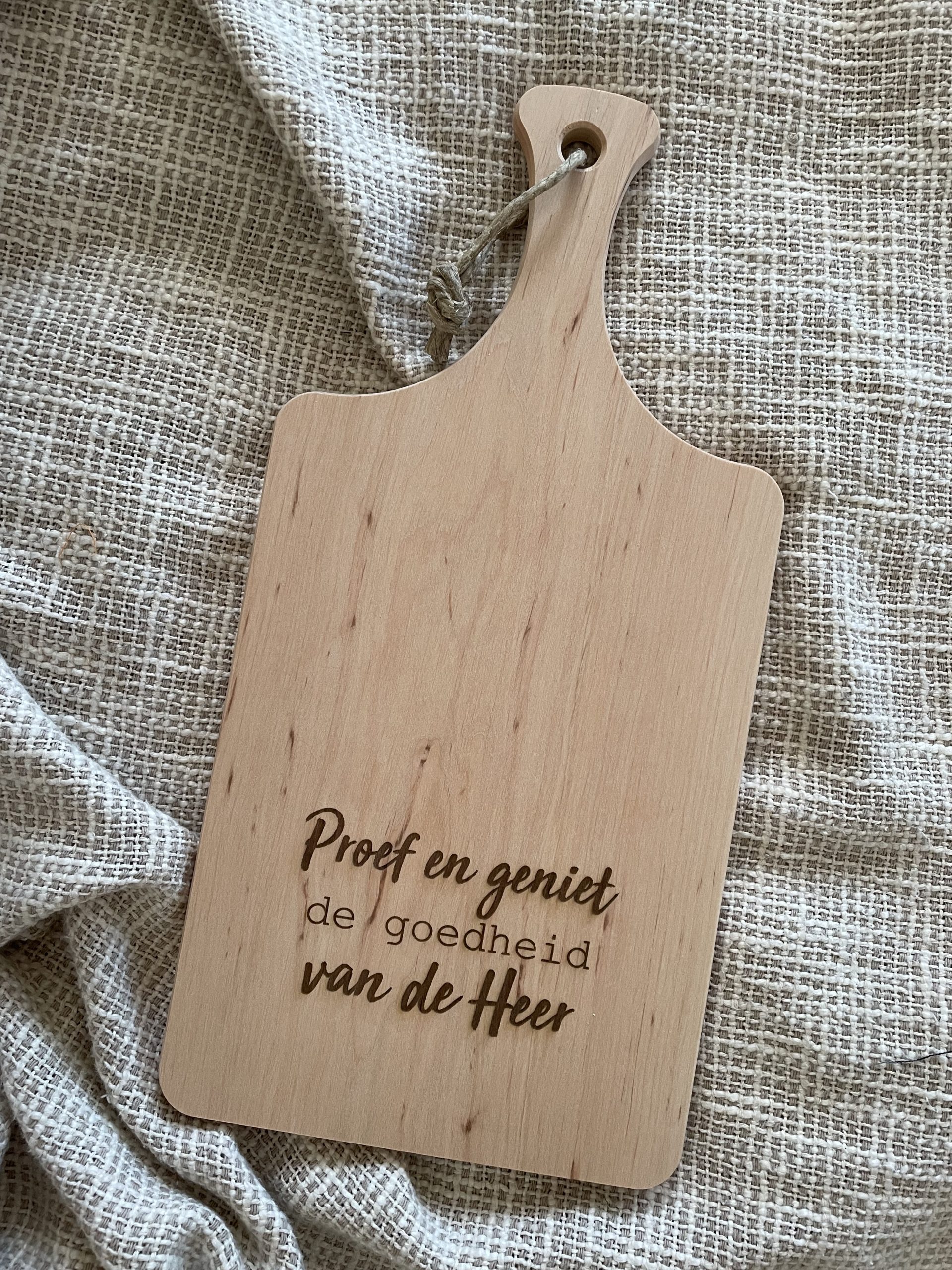 Een mooie houten plank met tekst. Uniek, persoonlijk en perfect voor veel gezelligheid.
