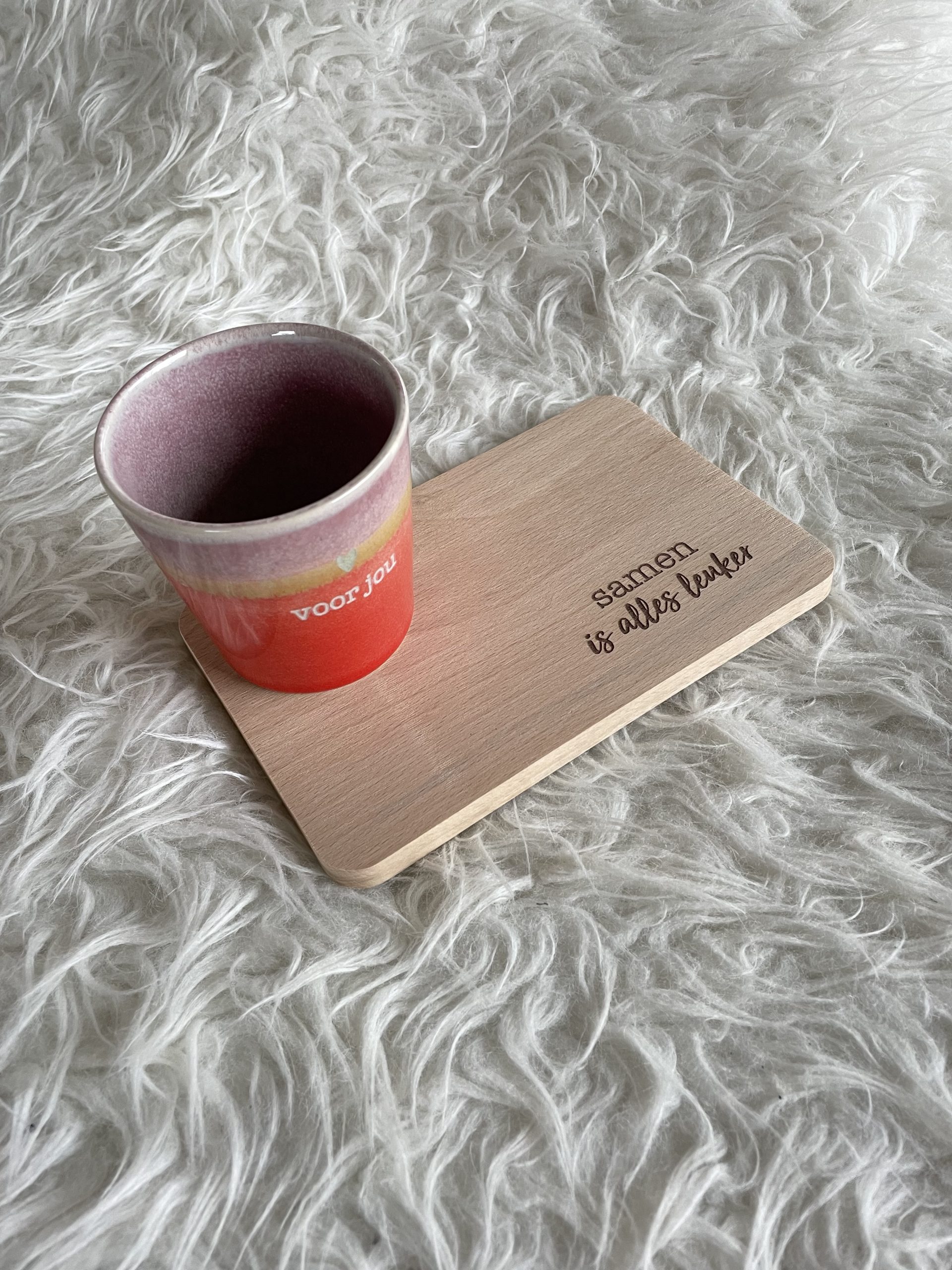 Een gezellig serveerplankje met de tekst “Samen is alles leuker”. Leuk op tafel samen met jouw kopje koffie of thee. Genieten!