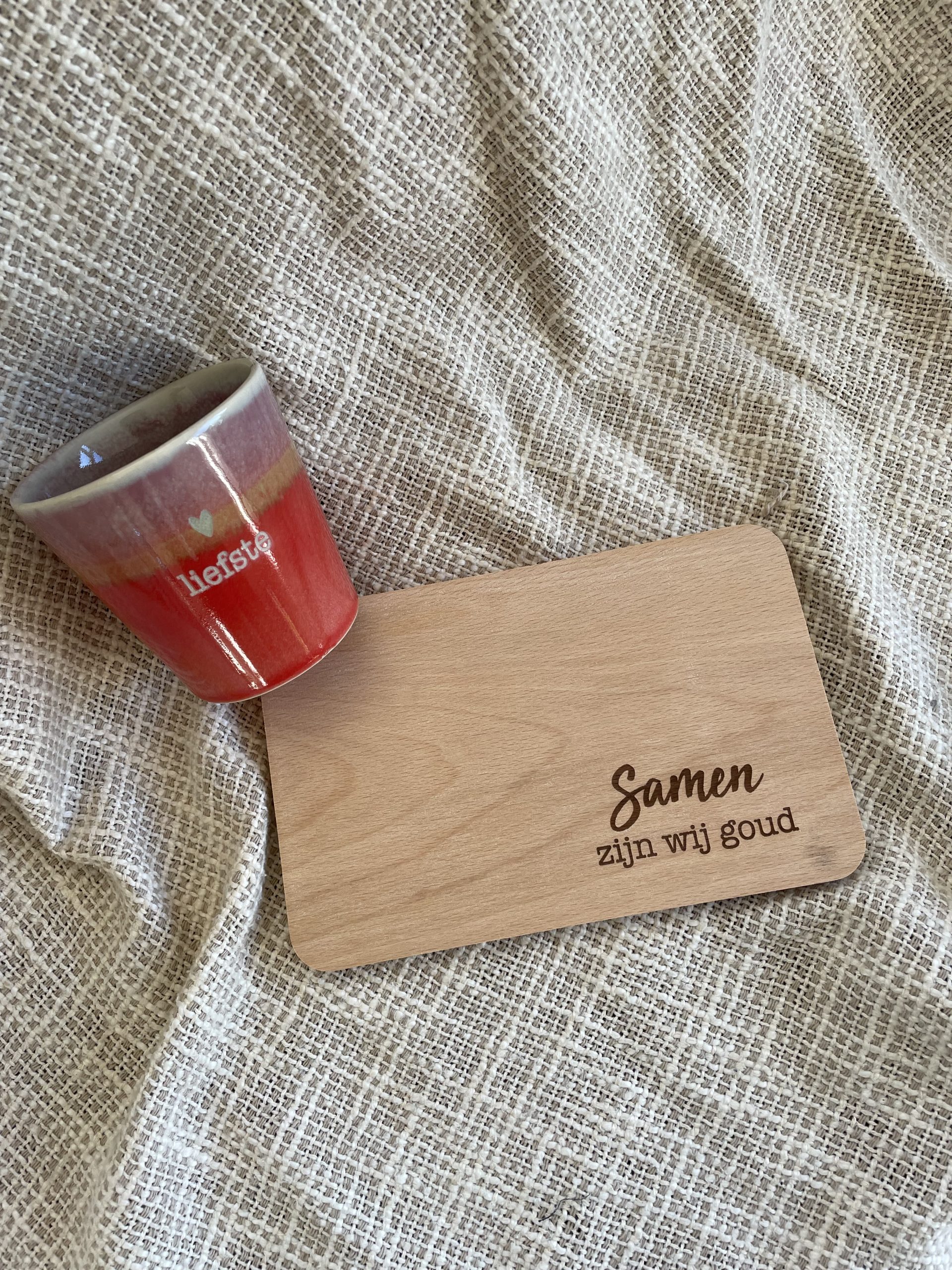 Een gezellig serveerplankje met de tekst “Samen zijn wij goud”. Leuk op tafel samen met jouw kopje koffie of thee. Genieten!