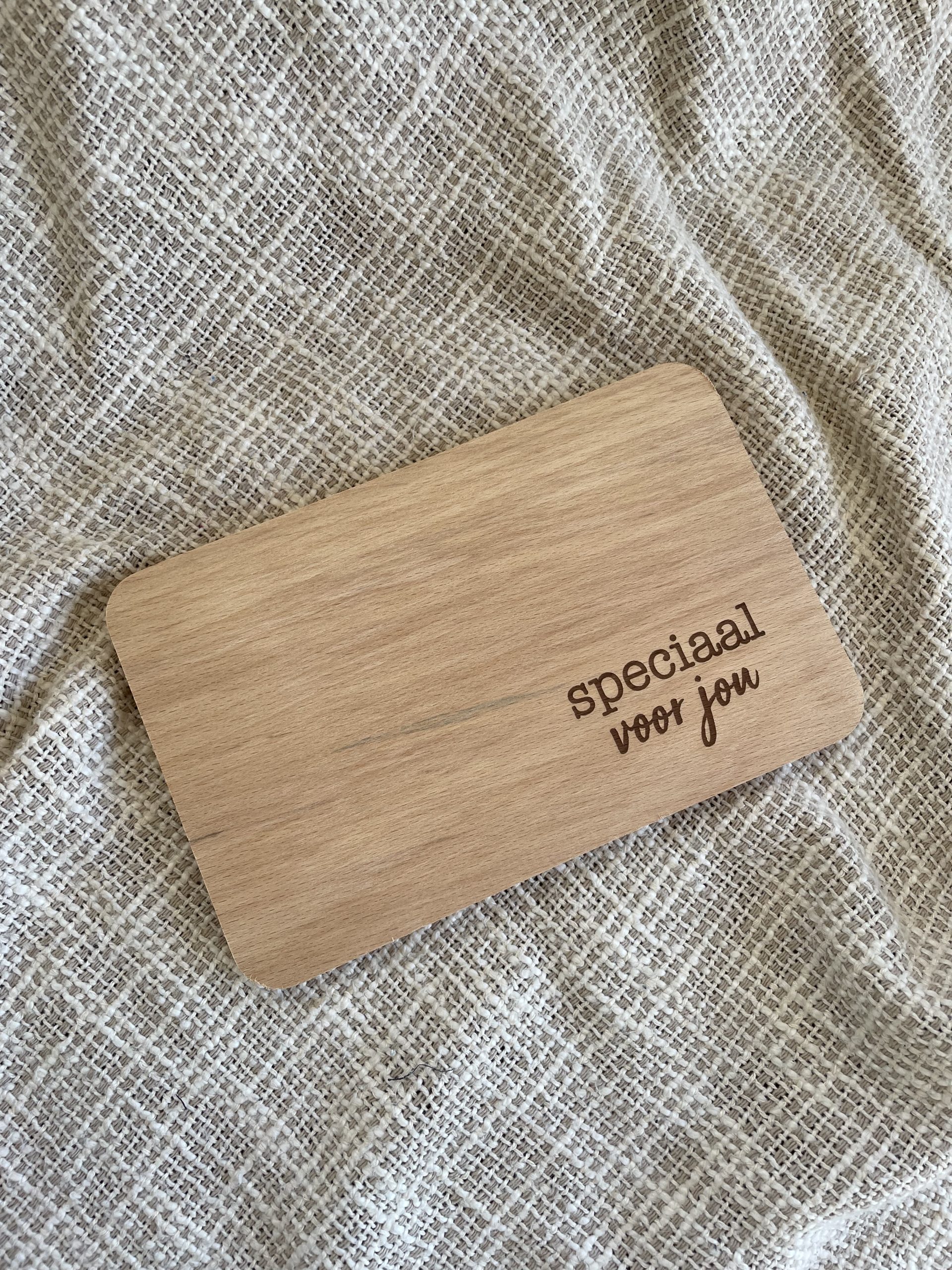 Een gezellig serveerplankje met de tekst “Speciaal voor jou”. Leuk op tafel samen met jouw kopje koffie of thee. Genieten!
