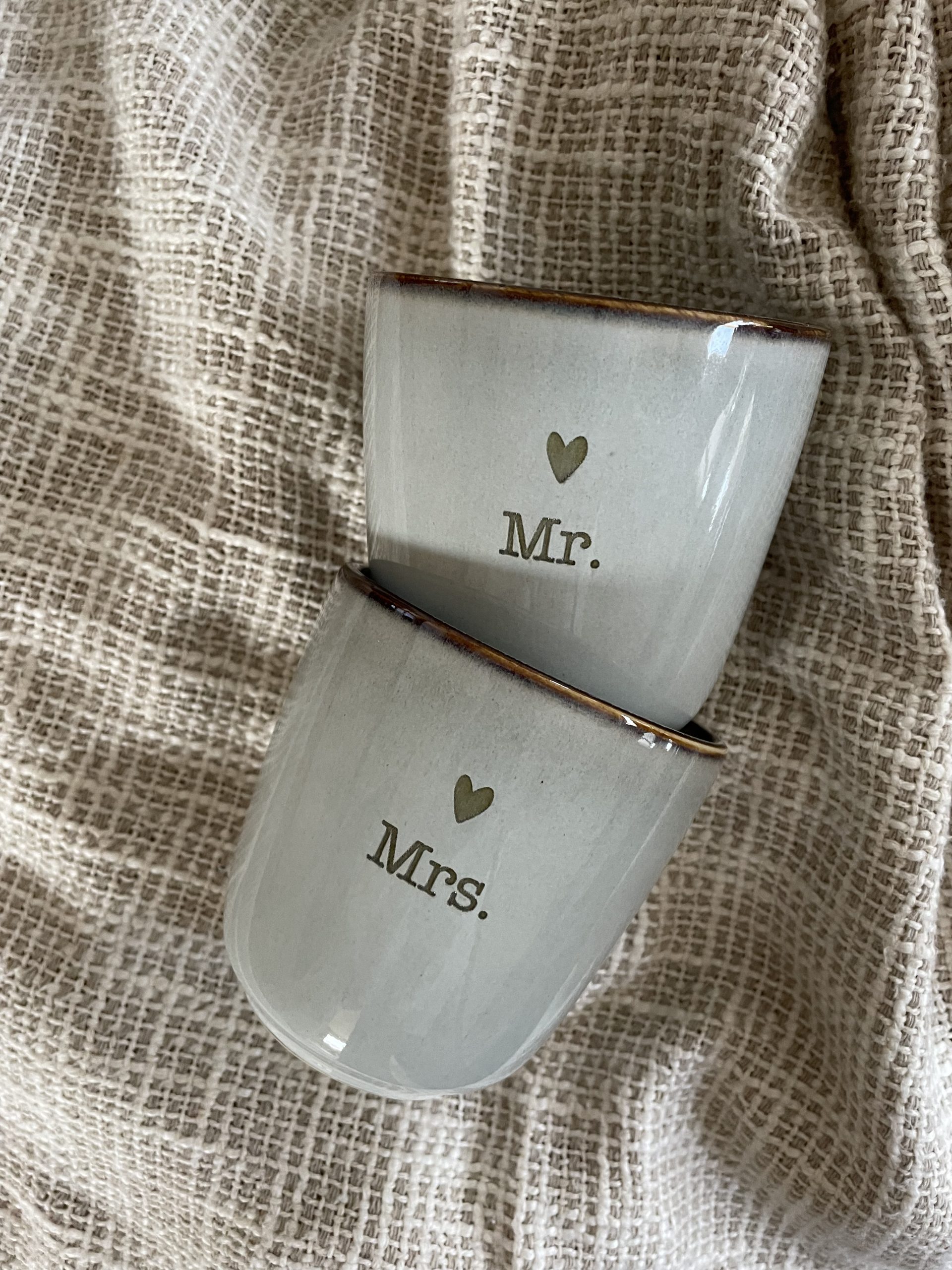 Een mooie set bekers voor mr. and mrs. … een perfect cadeau! Tip: combineer deze leuke bekers met een serveerplankje.