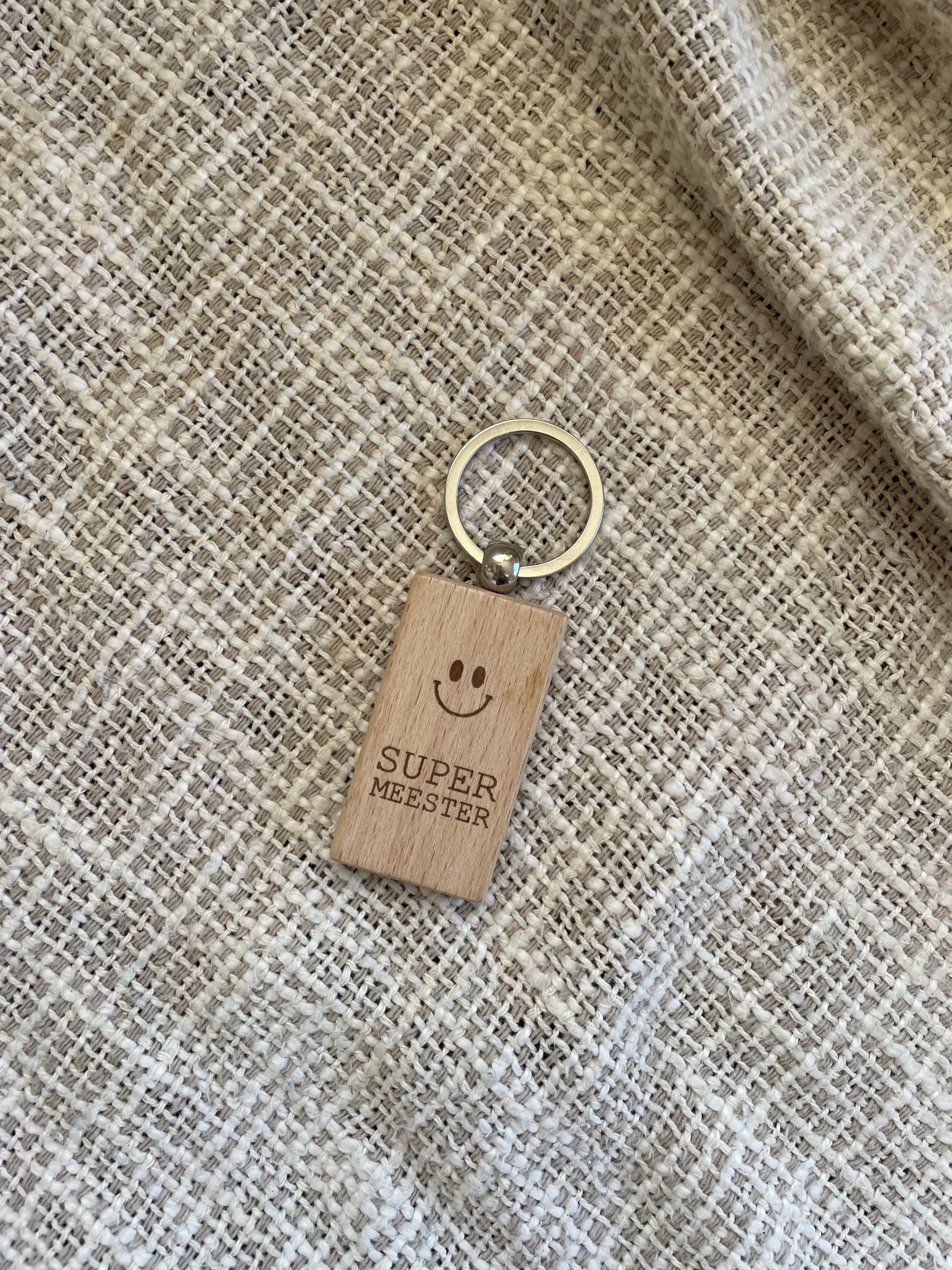 Deze houten sleutelhanger is echt een heel tof cadeautje voor de meester! De sleutelhanger wordt leuk verpakt, waardoor het een feestje is om dit cadeautje te geven.